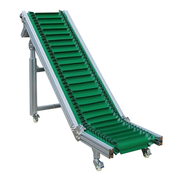 Băng tải PVC nâng hạ hàng với thiết kế đai băng tải được làm bằng chất liệu PVC xanh lá cây hoặc chất liệu PVC nhám. Đai băng tải có khả năng bám dính và tăng độ ma sát cho sản phẩm đang di chuyển ở phía trên nó.