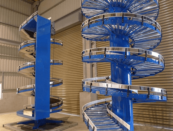 Thiết kế của băng tải độc đáo và dễ nhận biết với kiểu dáng hình xoắn ốc có độ nghiêng nhất định. Băng tải với hai chiều di chuyển là nâng lên và hạ xuống chuyển động theo hình xoắn ốc.